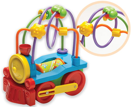 Boncuk Tren’i ilerletince pistonu da hareket ediyor. Üzerindeki renkli boncukları kaydırıp dolaştırırken miniklerin hem el becerileri gelişiyor hem de eğleniyorlar...