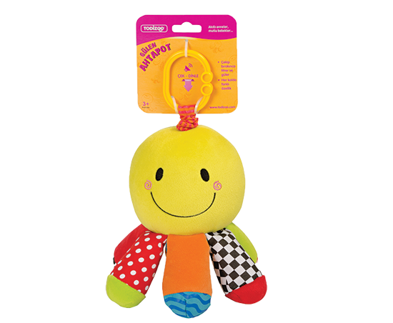 Gülen Ahtapot’un kolları bebeğiniz için sürprizlerle dolu. Çekip bırakınca gülme efekti ile yukarı çıkıyor, çıngıraklı, hışır ve boncuklu kollarla eğlence hiç bitmiyor.