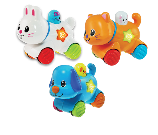 Sevimli köpek, kedi ve tavşan, ışıklı düğmeleri ve neşeli melodileri ile ilerliyor, bebeğinizin minik adımları onları takip ediyor.
