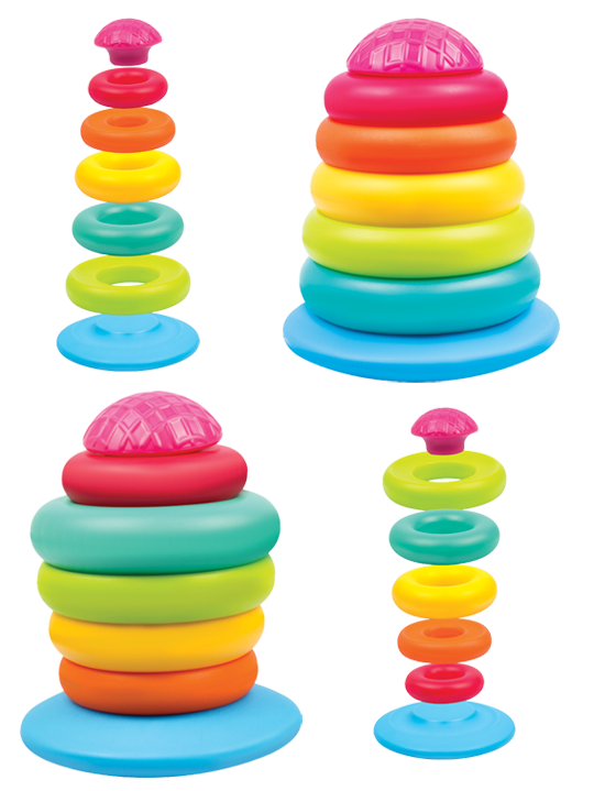 Minik eller halkaları hareketli taban parçasına dizerken bebeklerin el becerileri gelişiyor ve kas gelişimleri destekleniyor. Üstelik tüm parçalar yıkanabilir ve dişlik olarak kullanımı güvenlidir.